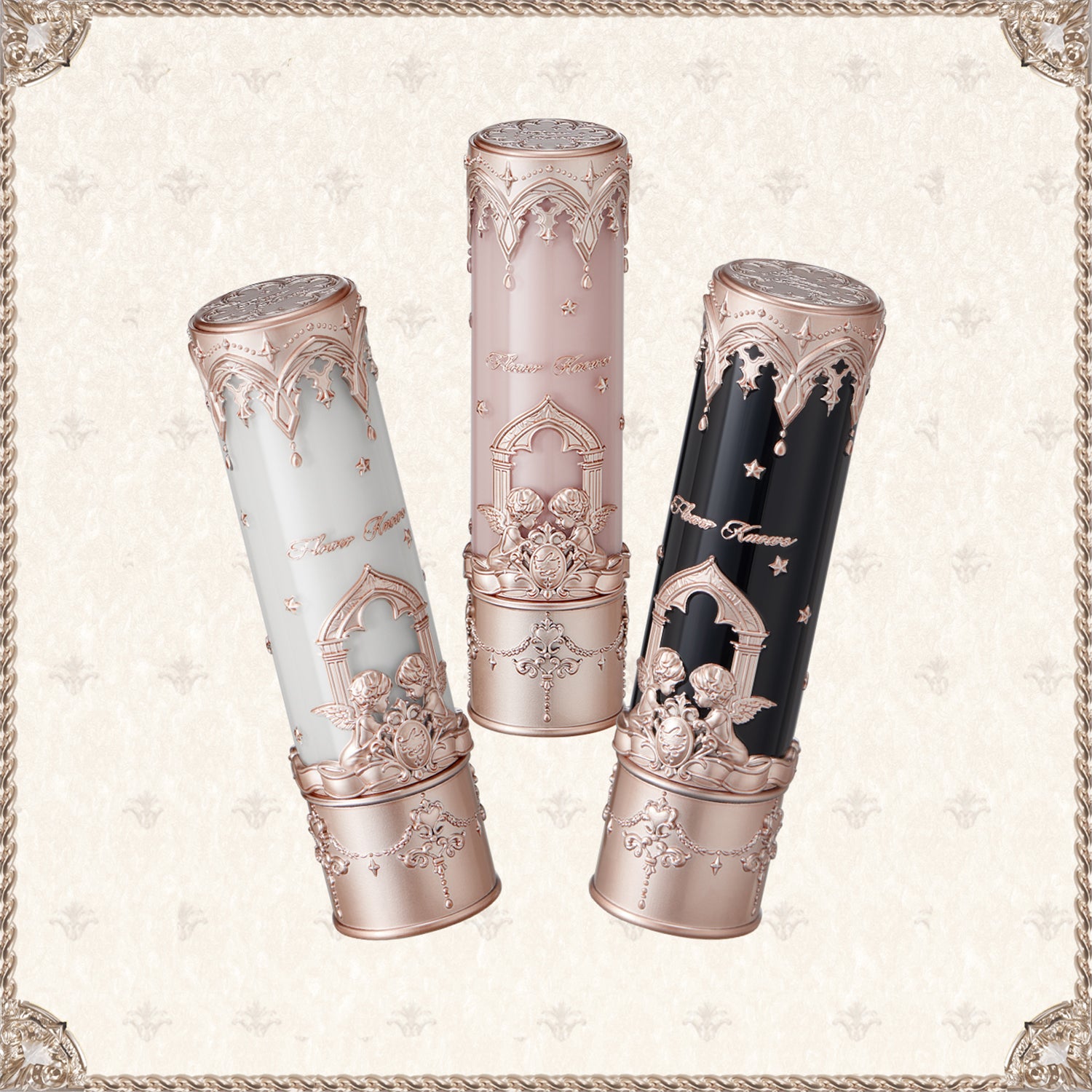 Drawing inspiration from "Medieval Gothic Architecture," our packaging seamlessly integrates elements such as pointed arches, rose windows, and gilded angels into its cylindrical design, adorned with stardust for a uniquely refined and dreamy aesthetic.